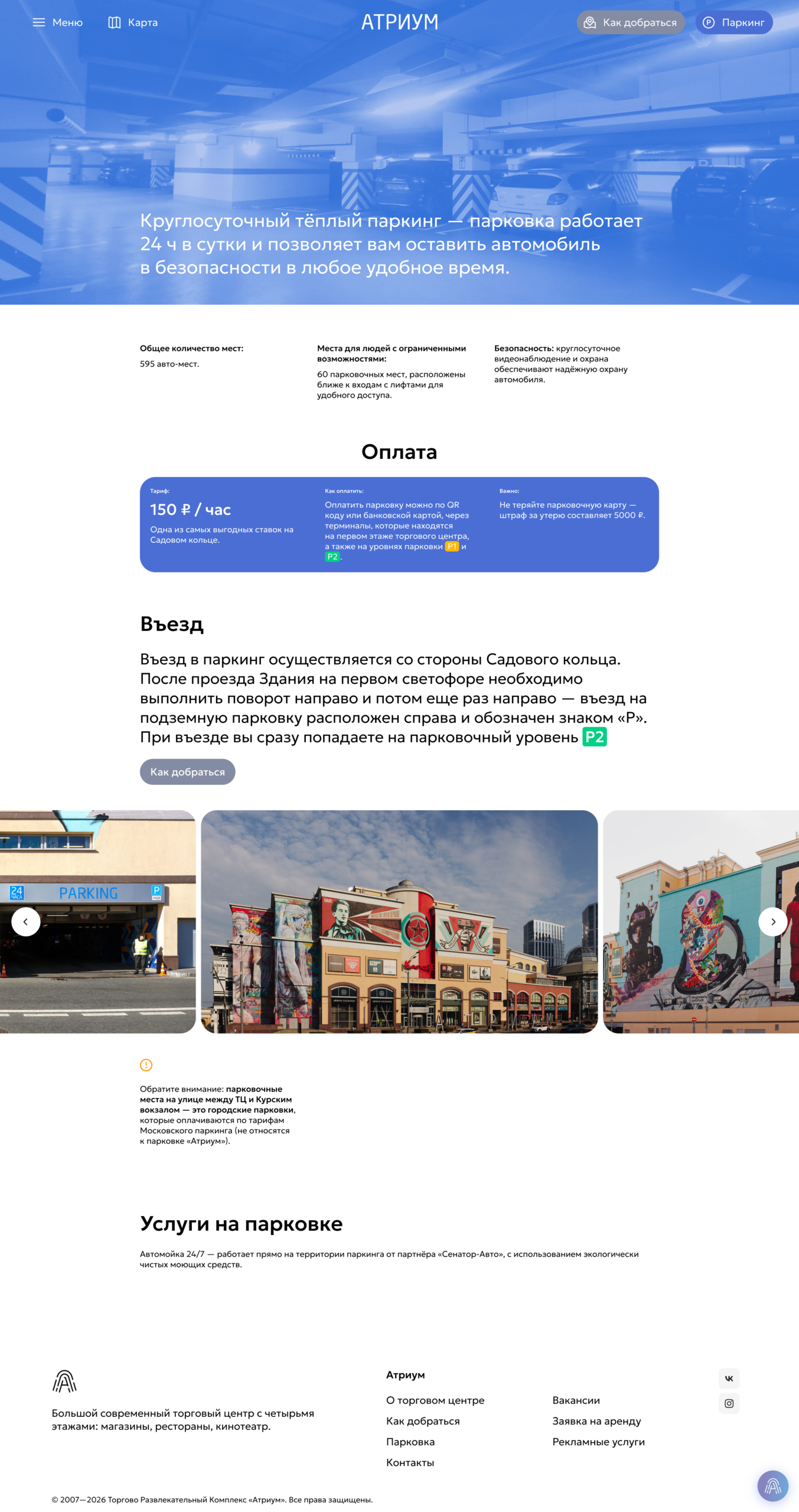 Парковка ТРК «Атриум» предлагает одно из самых выгодных предложений по крытой парковке в центре города. Для раздела о парковке мы собрали всю необходимую информацию в одном месте — от тарифов и режима работы до схемы въезда — и регулярно обновляем её.